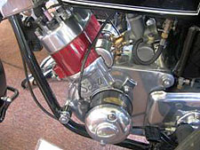 But, one might ask, doesn’t the fact that the motorcycle is designed to be functional—to do something—negate much of this beauty? I’d answer a resounding No! Frank Lloyd Wright, the father and patron saint of modern architecture, is well-known for his belief that "form follows function." The hammer looks the way it does because of what it does—if a hammer looked like a pillow, it wouldn’t be a very good hammer. A motorcycle, likewise, looks like a motorcycle because of what it does. Wright insisted upon the design of his structures being beautiful, no matter how functional they had to be. Consider the immense diversity among functional objects, among motorcycles in particular. Both Edward Turner’s Triumph Speed Twin and A.A. Scott’s watercooled 2-strokes had wheels and an engine, but consider how wonderfully and successfully different in execution each is. Many enthusiasts find racing motorcycles to be particularly attractive as objects of art. The stark functionality and the powerful intent of the designer to make the machine as light and as efficient as possible resulted in the racing machine being more than a mere abstract vision of the designer’s intent. Whatever a 1920s Indian board track racer or a 1960s CZ motocrosser lacks in paintwork and chrome, they more than make up for in uninterrupted beauty of line and form. Of course, there is much to appreciate in the gloriously decorated street machines of yesterday and today, too. The subtle colors, the contrast of metals, the intricate shapes of horns, the switches, the decals, the emblems—all give such machines immense and lasting visual appeal.