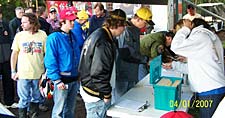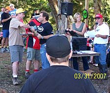 Randy Smith (yellow hat) shaking Danny LaPortes hand as Dave Boydson announces with his hot wife :) |