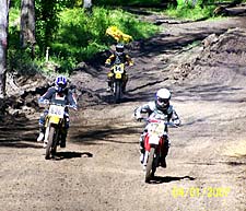 I think there were 8 Side Car rigs there. I had never got to see them run in person before but have always been attracted to them. You see I raced heavily modified 3 Wheelers for about 15 years so I can relate to the wild body moves needed to get them to turn. Controlled insanity is how we used to describe racing the 3 Wheelers and standing there watching them race made me think about doing it. That was until I saw one of the monkeys loose his footing and slam his ribs into the handhold. OUCH, my ribs were hurting enough anyway. Janette that hangs out on the Hodaka site was the monkey for her husband and they spanked the whole field bad. I saw them clearing the jumps like a lighter weight two-wheeler. That was Ultra Cool Janette. You are my hero.
