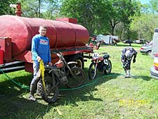 Me preparing to wash off my Hodaka after I picked the embarrassing ribbon out of my wheels and axles |