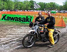 The plaques given out were funny. They had Diamond Don’s head placed on Brad Lackey’s body while on his RM back when he won his championship. Unfortunately due to the number of pre entries neither Dave (4th place), or Jake (3rd place) received a plaque. I didn’t get one either because I was slow. Andy’s second place was a Vintage plaque from the day before but he had already left to catch his plane and we didn’t notice it until we got home so couldn’t really exchange it. Austin was tickled with second place and was given extra attention for placing in his first National event and being barely age 16 but looking older due to his size (5’ 11” and 210 lbs). He got the cool Diamond Don plaque, a tee shirt and a Kawasaki Coozie (we have two Kawasaki’s at home). I felt sorry for Jake. He rode hard; the best so far and even had the hole shot. When we got back home I gave him my third place (Jake also was third) plaque from Saturday signed by Danny LaPorte. Jake lit up and gave me a big hug. It was the right thing to do.