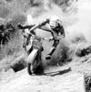 The fans cheer as the flagman extracts the left handle bar from the unfortunate riders rear, allowing him to rejoin the race!